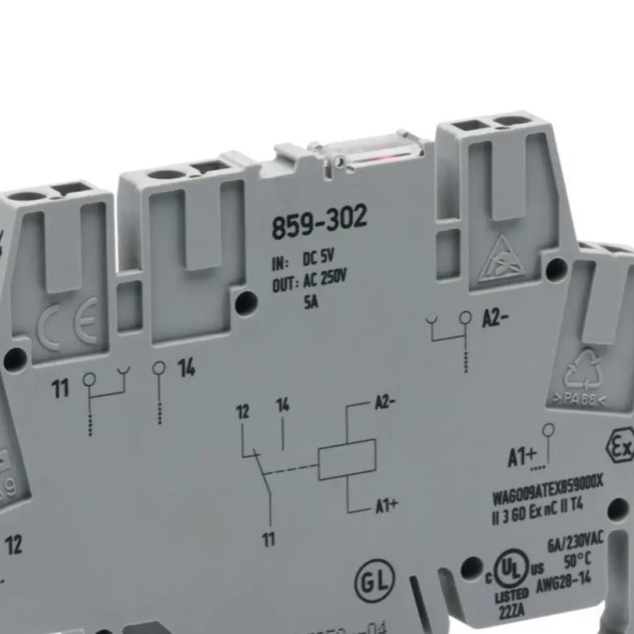 859-702 轨装端子式光电耦合器;适用于标准开关电压;负电平输出