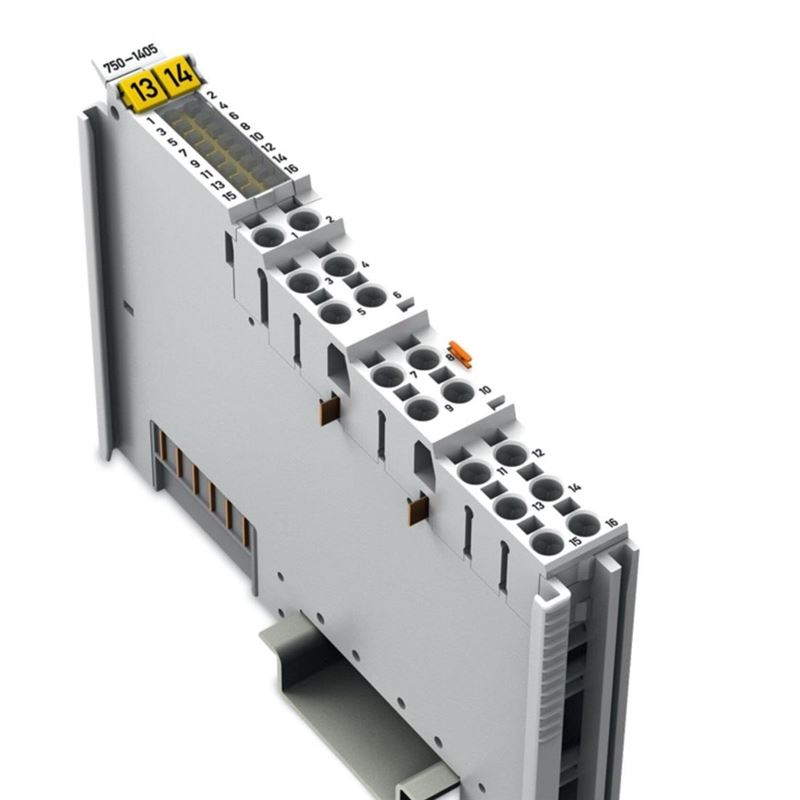 万可模块750-1405 WAGO,16通道数字量输入; 24 VDC; 3 ms; 外壳颜色是浅灰色。应用在工程机械,机器人,电梯等行业中。